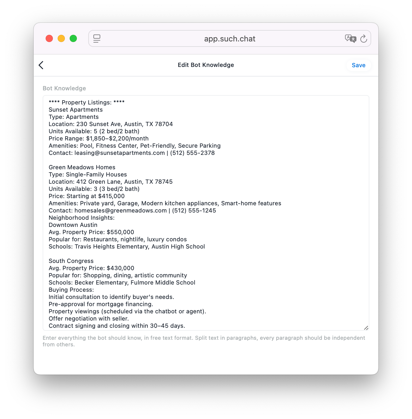 SUCH bot builder is a prime example of a tool that makes creating a real estate chatbot straightforward and stress-free. Here’s why using SUCH is a no-brainer choice compared to other options.