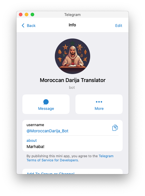 Choose a clear image that reflects your brand's identity. This is often the first impression users have of your bot.