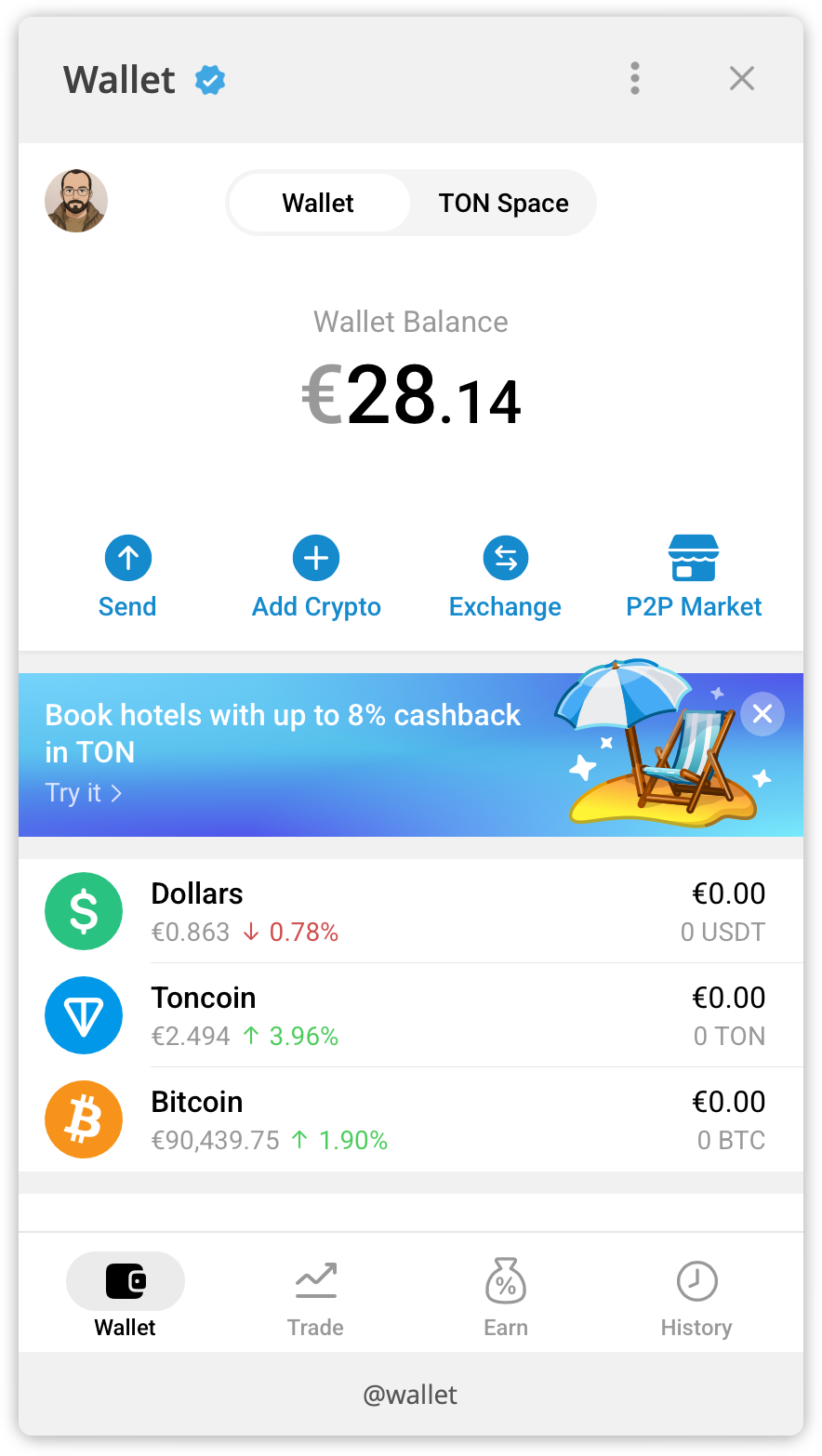 The Telegram Wallet is a Telegram-based crypto wallet that works directly inside the Telegram app. With it, you can: